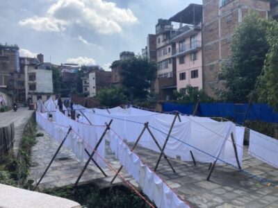 歩いていたら、干された大量のシーツの波!!