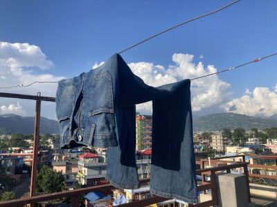 屋上に干した、洗って手絞りのジーンズは、数時間で乾いていました◎!!