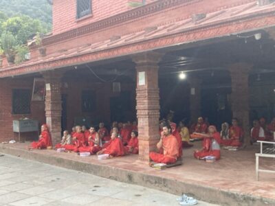 移動したポカラの小さな寺院で、修行中の小僧さんたちが、いまして。けっこうユルそうで和みました◎
