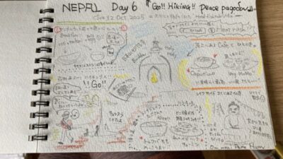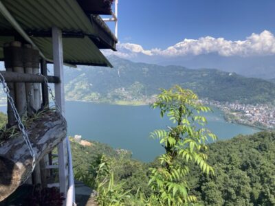 アンナプルナの裾野をトレッキング!歩いて歩いて「平和寺、ピースパゴダ」へ。見下ろす景色は最高に気持ちが良かったです。美味しいコーヒーも、ネパール餃子もうれしかったようです。