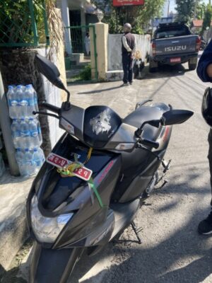 近くの商店で借りたバイク。