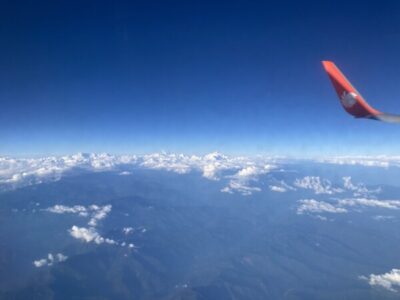 ヒマラヤを外界に見下ろしながら、空を飛んでいる。