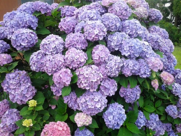 目線に大迫力の アジサイ! 漢字で「紫陽花」。