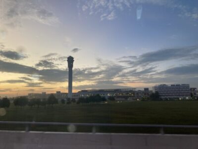 羽田を夜出発して、到着早朝の朝焼けを眺めながら、バスで移動しました。